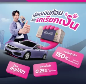 สินเชื่อรถแลกเงินจากไทยพาณิชย์ ที่เปลี่ยนรถเป็นเงินสดได้ง่ายๆ จุดเด่นคือรับรถใหม่และรถอายุไม่เกิน 15 ปี ให้วงเงินสูงสุดถึง 5 ล้านบาท ข้อดีคือความสะดวกในการชำระเงินผ่านแอป SCB EASY ได้เลย เหมาะสำหรับคนที่มีบัญชีไทยพาณิชย์อยู่แล้ว และต้องการระบบที่จัดการง่าย เชื่อถือได้ครับ