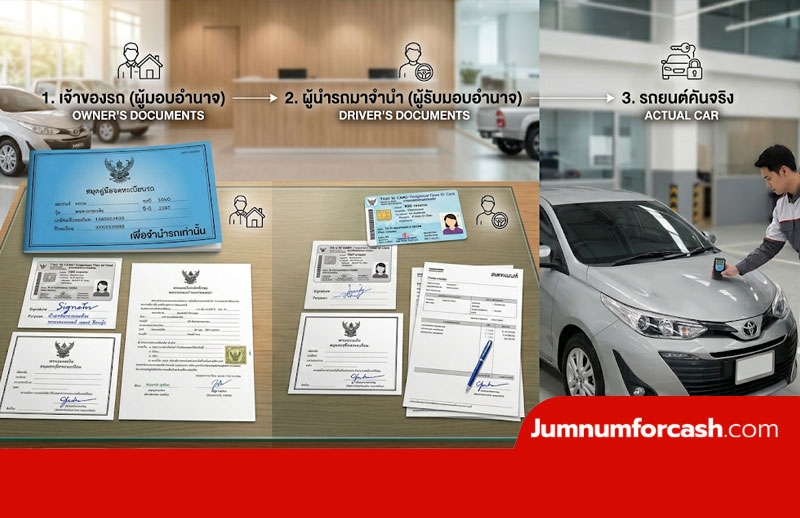หากเจ้าของรถตัวจริงไม่สามารถเดินทางมาได้ คุณยังสามารถนำรถมาจำนำได้ครับ แต่กระบวนการจะรัดกุมขึ้น โดยต้องใช้เอกสารทางกฎหมายที่เรียกว่า “หนังสือมอบอำนาจ” ซึ่งต้องมีรายละเอียดดังนี้: